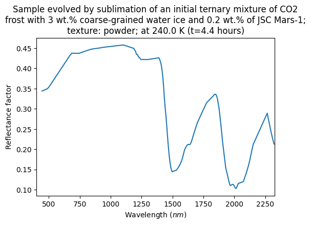 - Yoldi, Zuriñe (2018): VIS-NIR reflectance spectra collected during a sublimation experiment with ternary mixtures of CO2 frost, spherical water ice particles and JSC Mars-1 regolith simulant. SSHADE/BYPASS (OSUG Data Center). Dataset/Spectral Data. https://doi.org/10.26302/SSHADE/EXPERIMENT_ZY_20180207_000