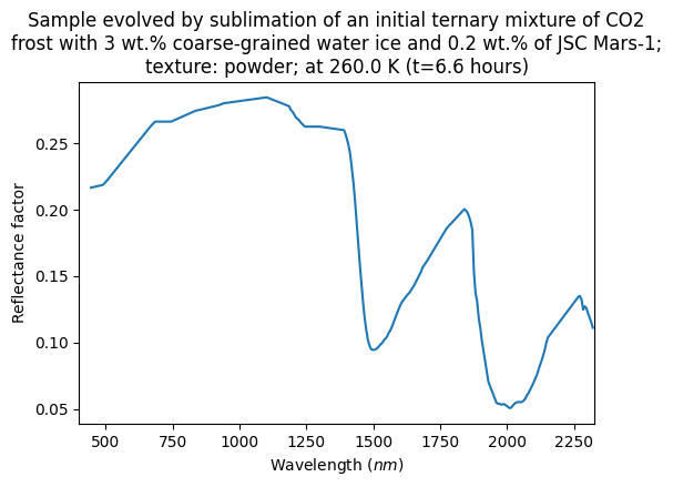 - Yoldi, Zuriñe (2018): VIS-NIR reflectance spectra collected during a sublimation experiment with ternary mixtures of CO2 frost, spherical water ice particles and JSC Mars-1 regolith simulant. SSHADE/BYPASS (OSUG Data Center). Dataset/Spectral Data. https://doi.org/10.26302/SSHADE/EXPERIMENT_ZY_20180207_000