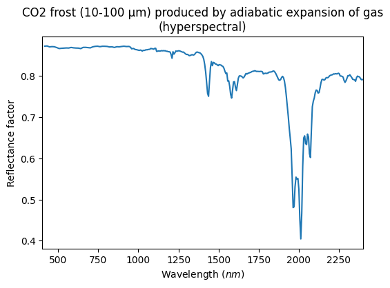 - Yoldi, Zuriñe (2018): VIS-NIR reflectance spectra of binary mixtures of CO2 frost (10-100 µm) and fine-grained spherical water ice particles (4.5 µm average diameter). SSHADE/BYPASS (OSUG Data Center). Dataset/Spectral Data. https://doi.org/10.26302/SSHADE/EXPERIMENT_ZY_20180209_000