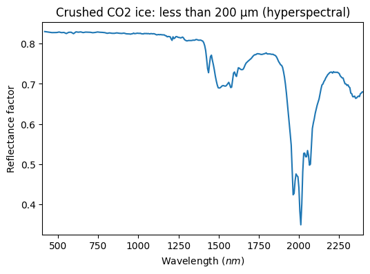 - Yoldi, Zuriñe (2018): VIS-NIR reflectance spectra of CO2 ice particles produced by crushing and sieving a compact slab of CO2 ice. SSHADE/BYPASS (OSUG Data Center). Dataset/Spectral Data. https://doi.org/10.26302/SSHADE/EXPERIMENT_ZY_20180212_000