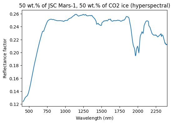 50 wt.% of JSC Mars-1, 50 wt.% of CO2 ice (hyperspectral)