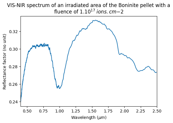 VIS-NIR spectrum of an irradiated area of the Boninite pellet with a fluence of 1.1017 ions.cm-2