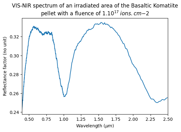VIS-NIR spectrum of an irradiated area of the Basaltic Komatiite pellet with a fluence of 1.1017 ions.cm-2