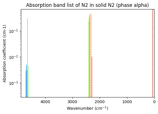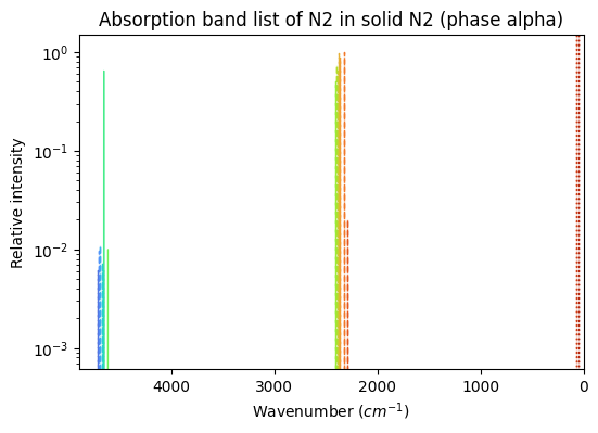 - Absorption band list of N2 in solid N2 (phase alpha)