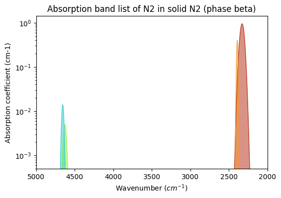 - Absorption band list of N2 in solid N2 (phase beta)