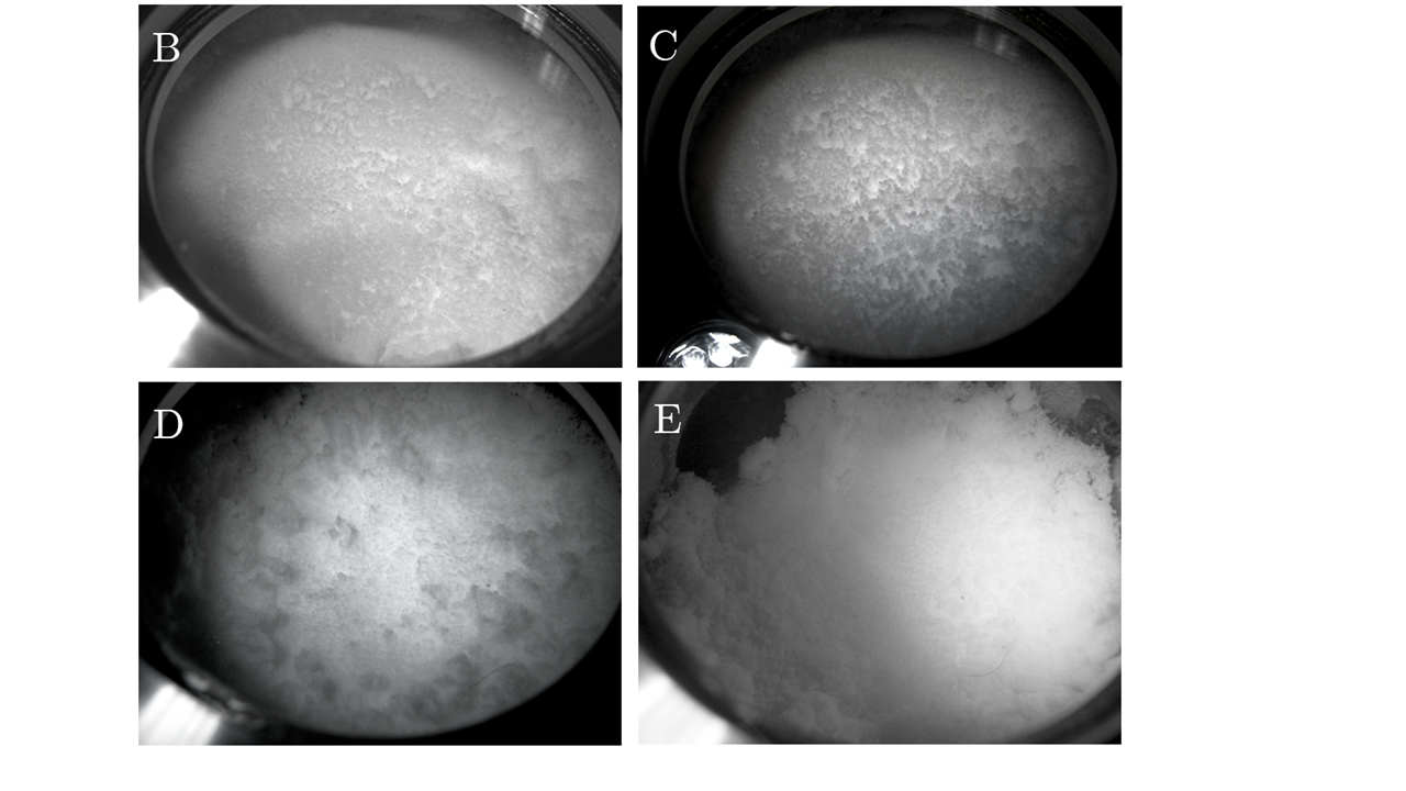 - heterogeneous H2O ice layer developing during sublimation on top of the CO2+H2O snow mixture deposited over a 5 mm thick flat layer of martian analogue dust