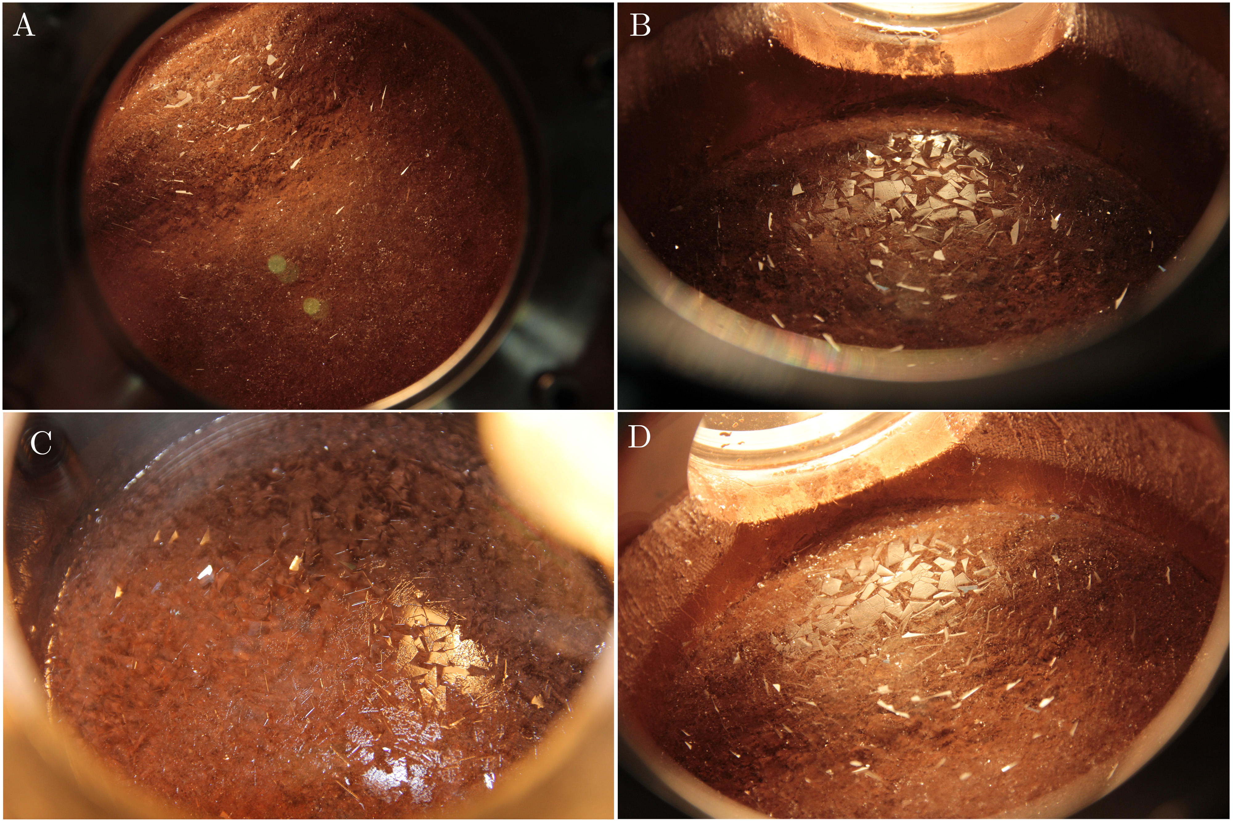 the polycrystalline CO2 ice grows over a 7 mm thick flat layer of martian analogue dust