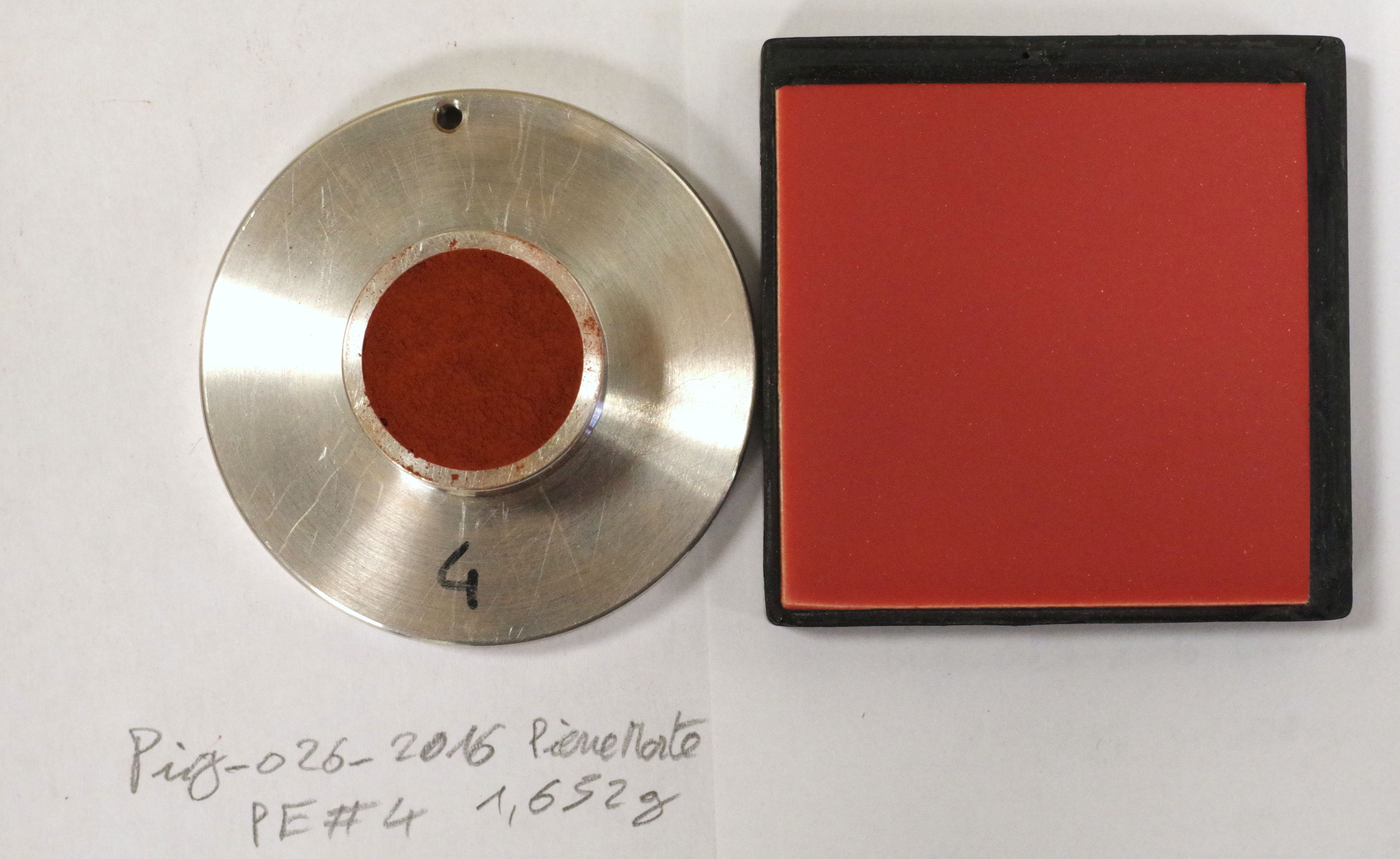 - Pigment Pierremorte (PIG_0020_B_601), ferruginized limestone powder (grains inf. 160µm, d=1.04)