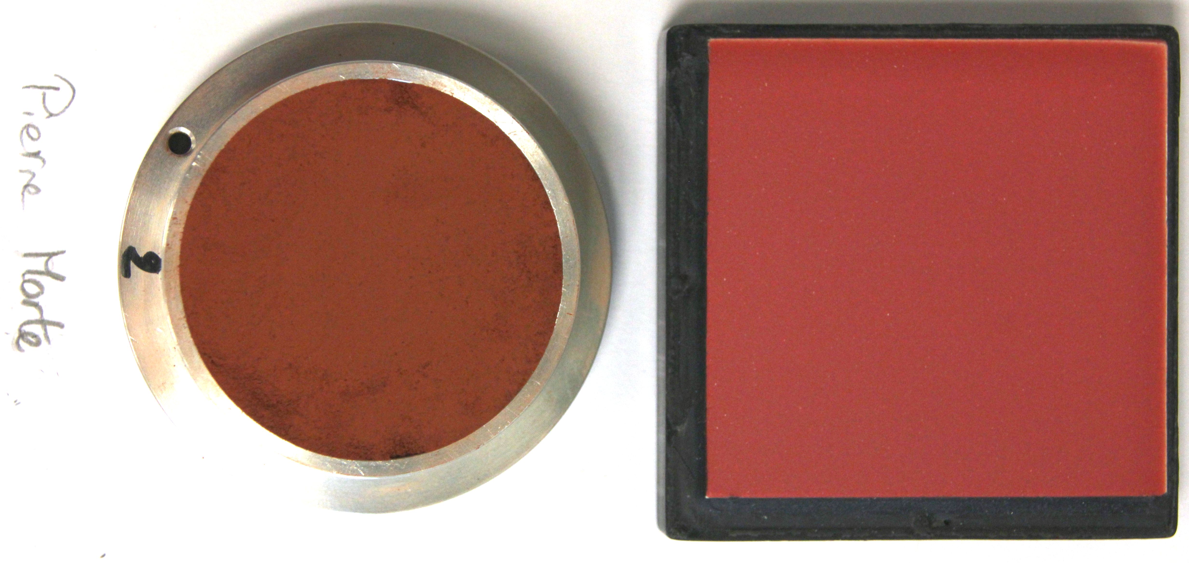 - Pigment Pierremorte (PIG_0020_B_601), ferruginized limestone powder (grains inf. 160µm, d=1.54)