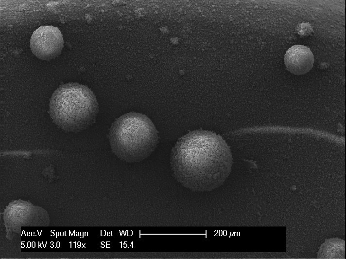 - Water ice spherical particles 67±31 μm at about 120 K (this sample)