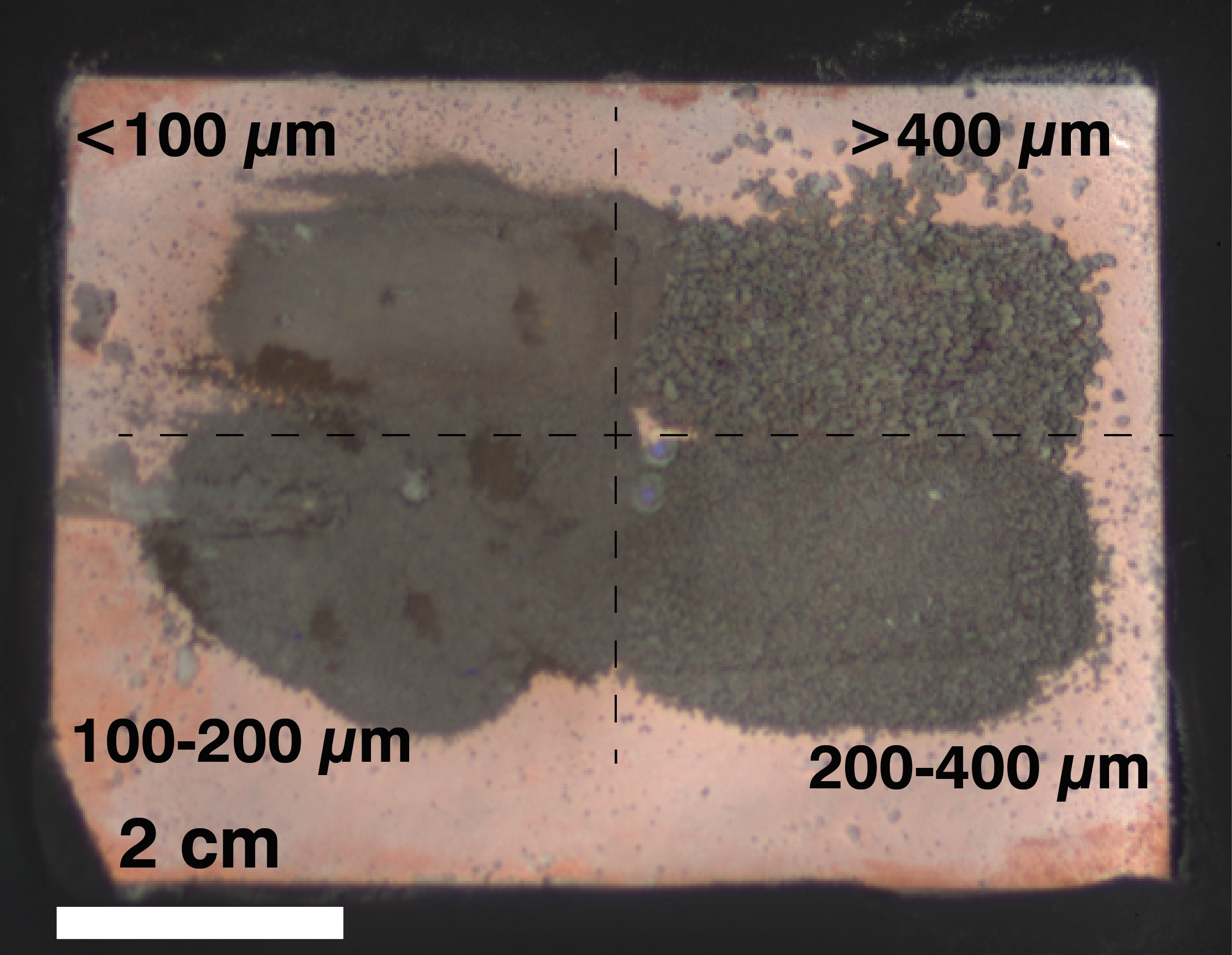 Water frost (~33 µm thick) on JSC Mars-1 (100-200 µm grains)