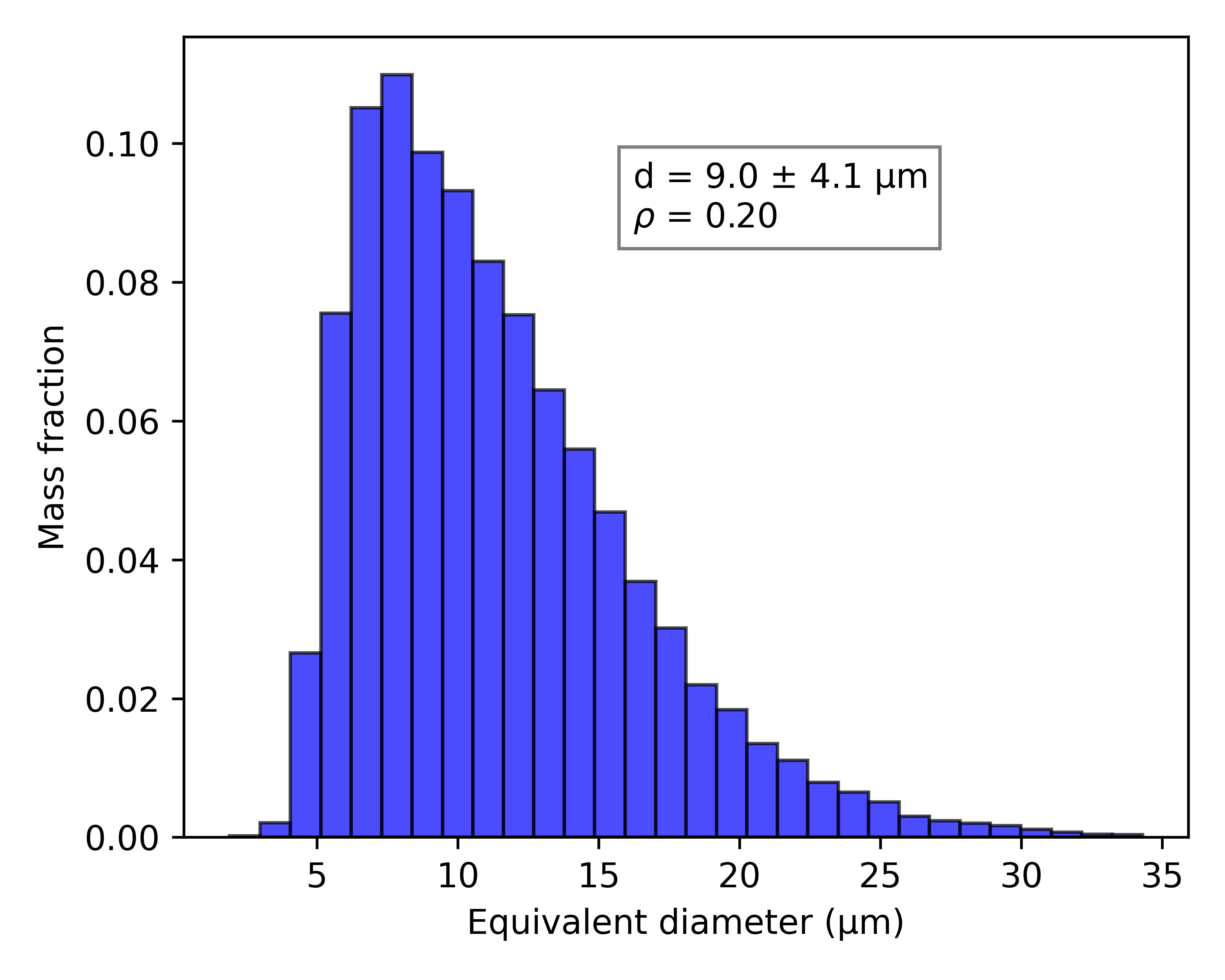 - Numerical sample consisting of crystalline H2O ice spherical particles (9 µm average diameter), packed to a semi-infinite medium with volume fraction of 0.2